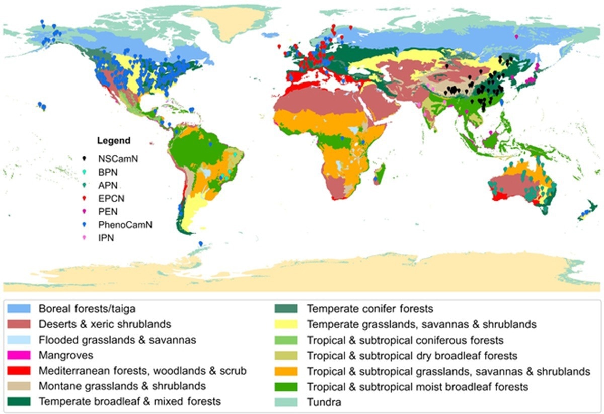 The study combined Sentinel-1 radar, Sentinel-2 multispectral imagery, and dense near-surface camera data. Automated spatial matching aligned oblique camera views with satellite pixels, while regression models reconstructed daily NDVI sequences. Random Forest classifiers were applied for land cover classification using multimodal temporal features. For dynamic updates, migrated samples ensured consistency across time periods. High-resolution parcel mapping employed the SAM model within samgeo, enabling flexible segmentation of croplands, urban structures, and water bodies. Validation was conducted across eight ecologically diverse sites on multiple continents.